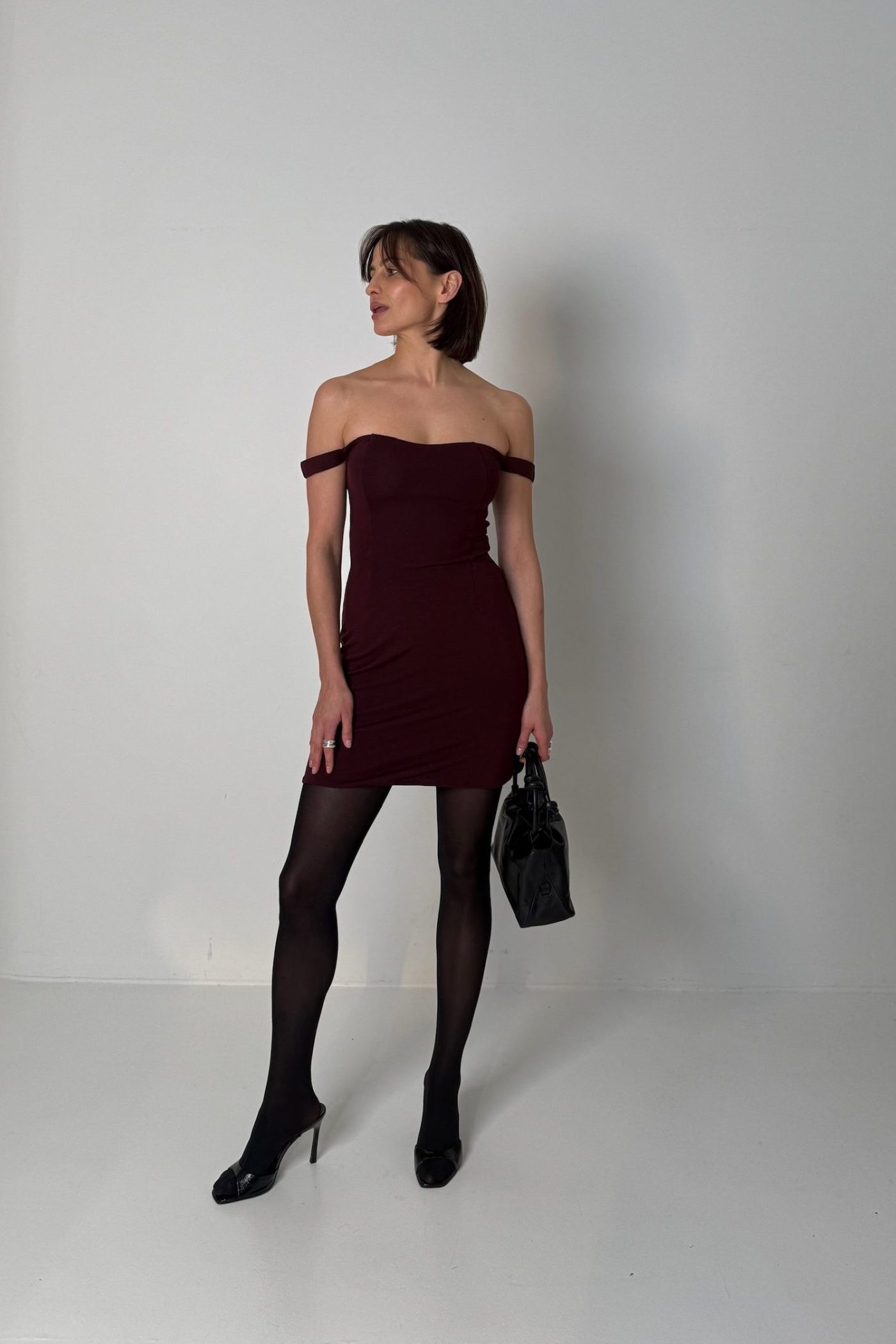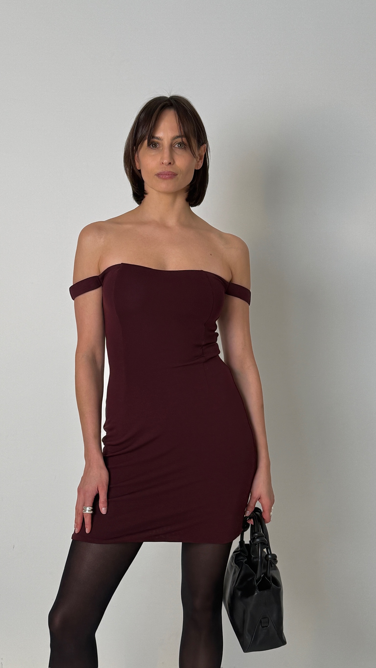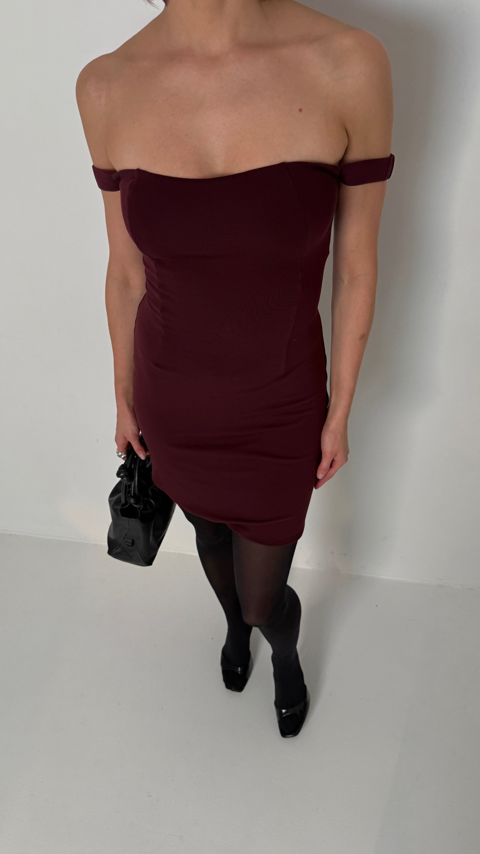 Mini bardot wine dress